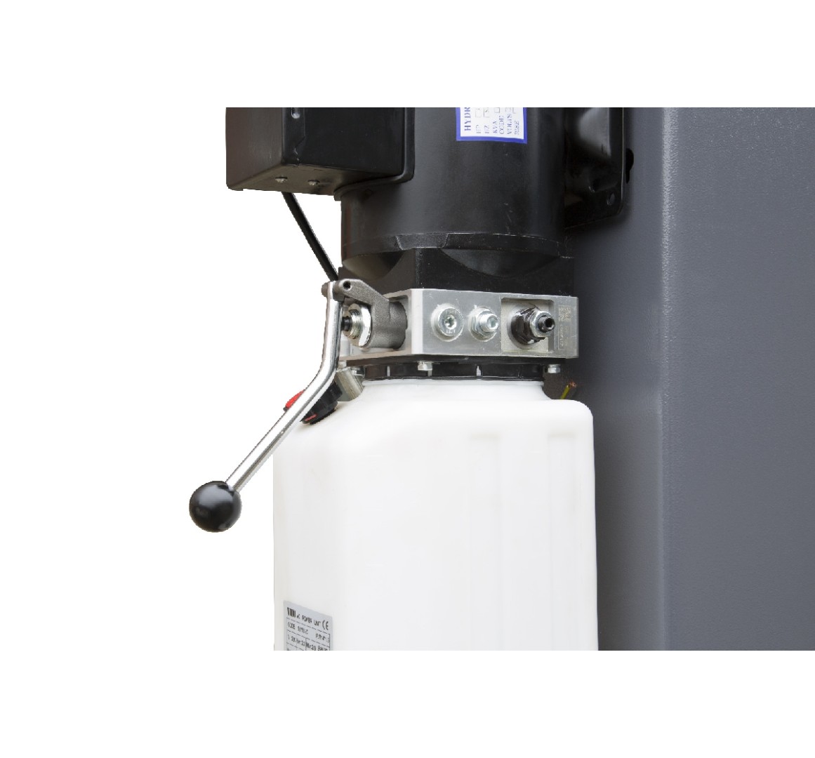 - Возможность расположить гидростанцию как сбоку, так и на переднем торце левой колонны, что значительно экономит место. Реализовано за счет использования переходника, входящего в стандартный комплект поставки (см. фото)