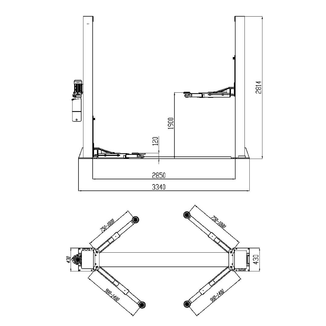 Двухстоечный электрогидравлический подъемник с нижней синхронизацией KRAFTWELL KRW4DLM грузоподъемностью 4000 кг предназначен для подъема легковых автомобилей, внедорожников и легкого коммерческого транспорта с короткой колесной базой. За подъем автомобиля отвечают два гидравлических цилиндра с цепным приводом каретки. Такой тип привода уменьшает нагрузку на гидроцилиндры и обеспечивает долговечность их работы. Внутри колонн расположены каретки с поворотными лапами асимметричной конструкции, применяемые на подъемниках для американского рынка. Каретки снабжены нейлоновыми ползунами, обеспечивающими плавное перемещение внутри стоек. Простая и, в тоже время, надежная система механических стопоров со снятием с двух сторон обеспечивает безопасное удержание автомобиля в поднятом состоянии на протяжении всего времени ремонта. Габаритная высота подъемника составляет 2814 мм и позволяет устанавливать его в помещениях с высотой потолка от 3 метров и выше.