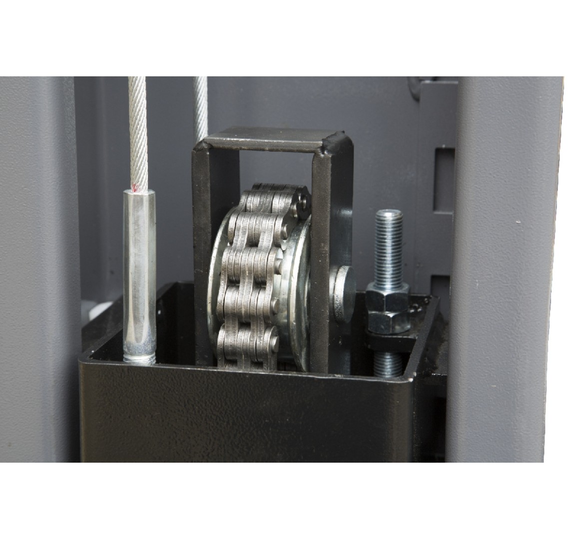 - Два надежных гидравлических цилиндра с цепным приводом каретки