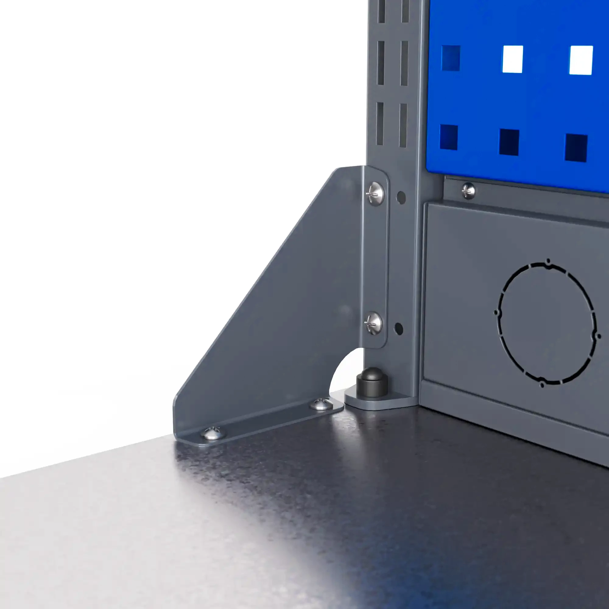 Самые компактные верстаки с глубиной столешницы 500 мм. Благодаря небольшой глубине, такие верстаки легко размещаются в ограниченных пространствах, например, в гаражах, мастерских и тд. Несмотря на компактные размеры, верстаки могут быть оснащены полками, ящиками и держателями для инструментов, что помогает поддерживать порядок и быстро находить нужные предметы.