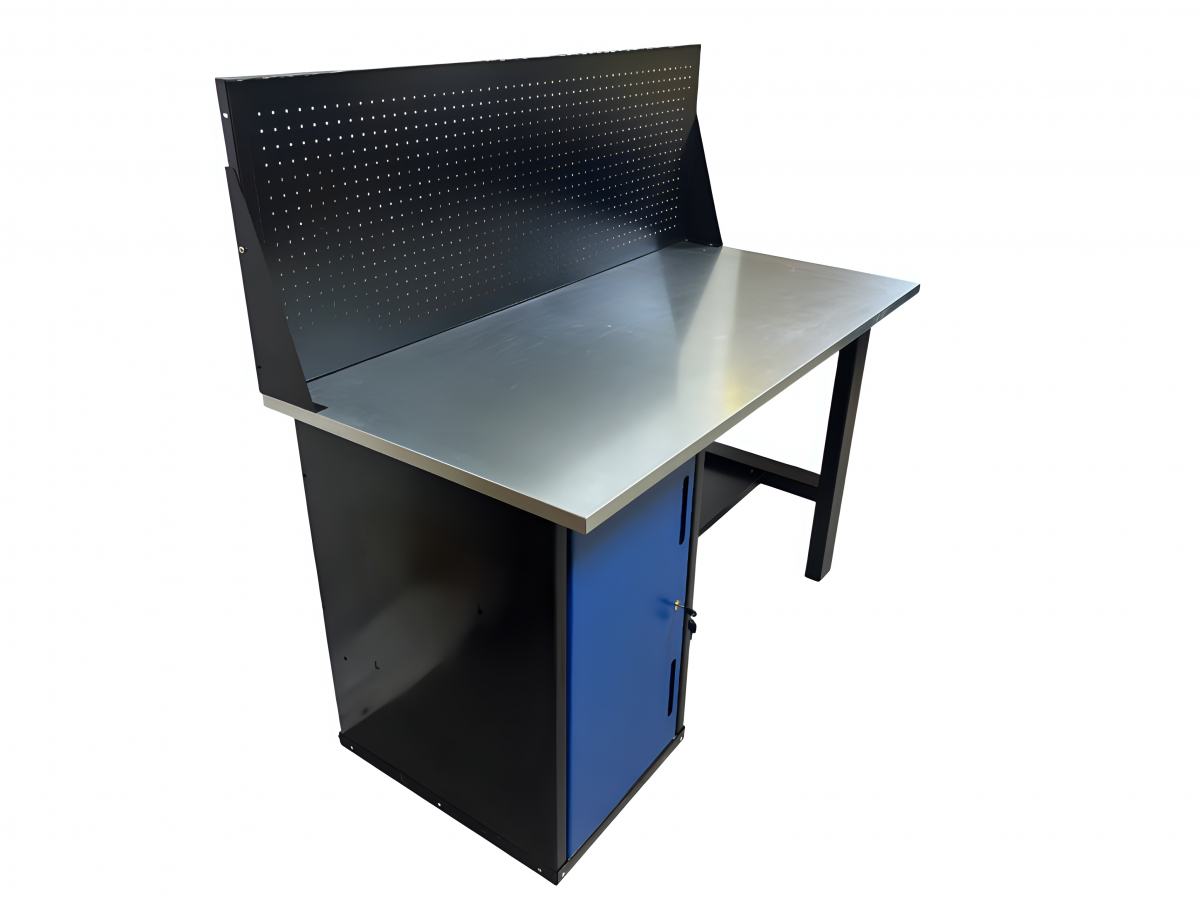 Усиленная столешница (1400х700х27мм) из МДФ и оцинкованного металла позволяет закрепить тиски и производить любые силовые работы по ремонту.